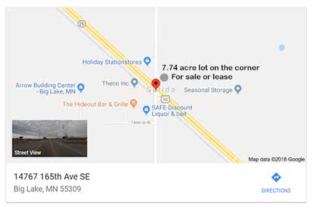 Becker, Minnesota. 7.74 acres directly on the North East corner of Hwy 10 and County 11. Zoned commercial and the permitted uses